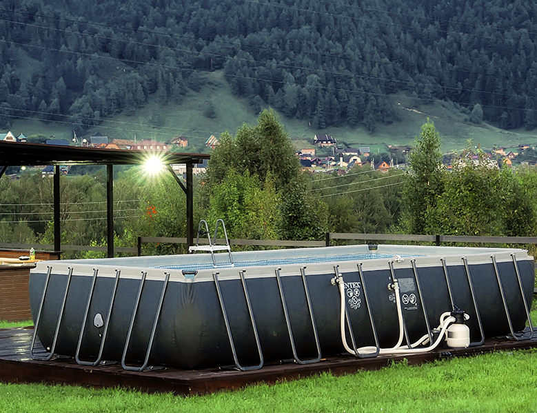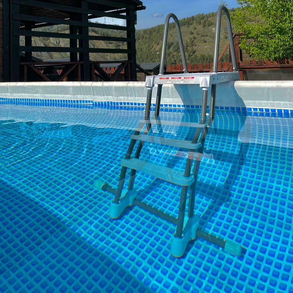 Два бассейна 7,5х5м с чистой прохладной водой и видом на горы порадут в жаркие летние дни и не оставят равнодушным ни одного посетителя базы.